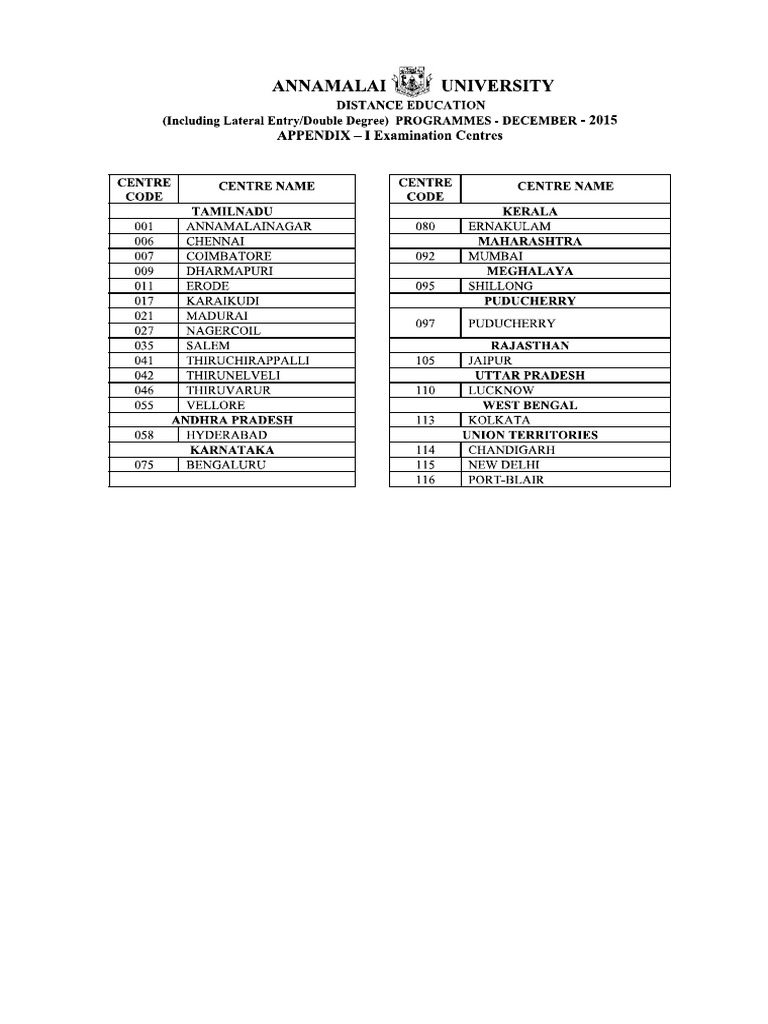 Annamalai University Time Table 2020 Ug Pg Semester Exam Date Sheet