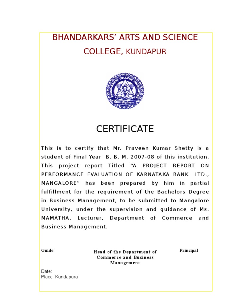 Organisation Study Karnatka Bank