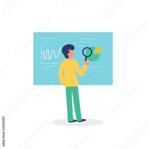 Man With Loupe Analyzing Information Business Strategy Algorithm
