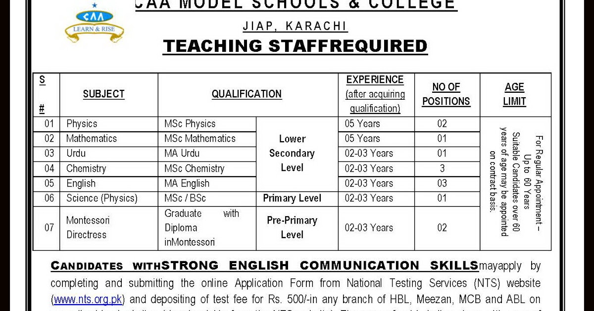 Teachers Jobs 2018 For Schools In Karachi