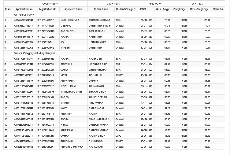 Merit List 2019 College Admission Merit List 2019 Counselling