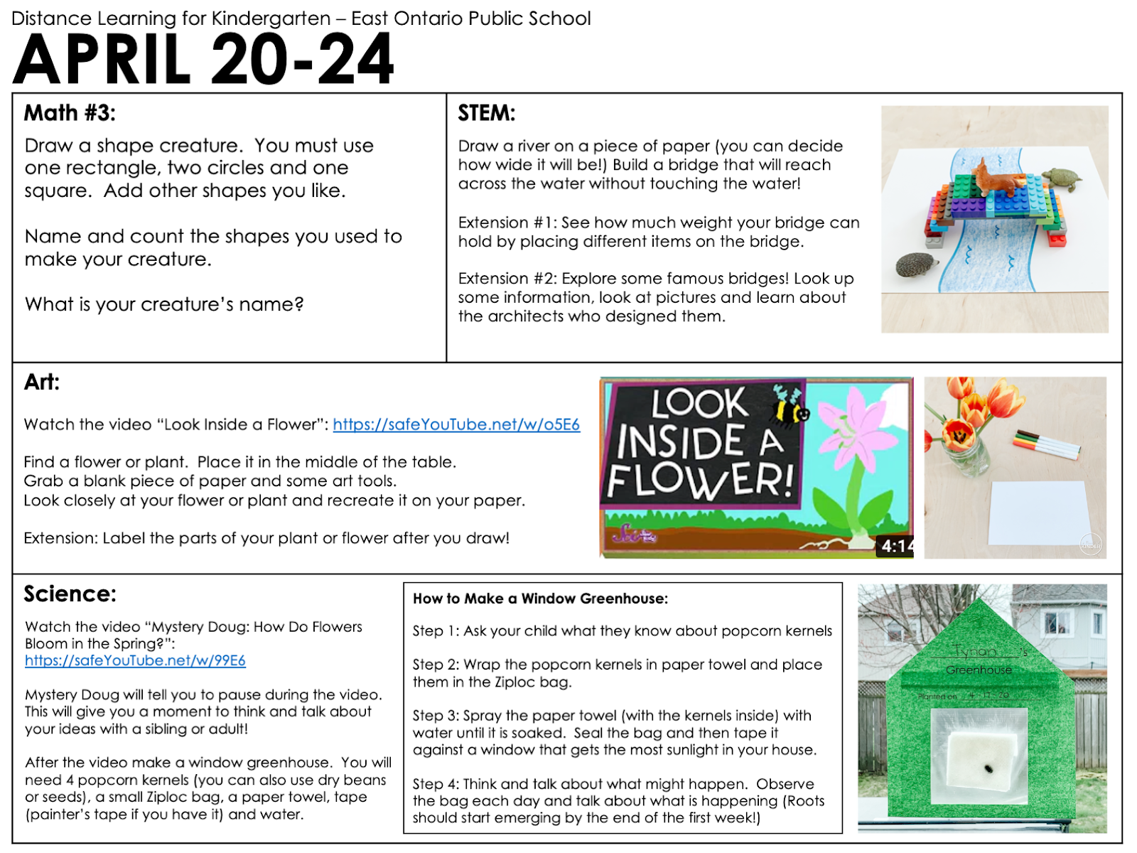Distance Learning Ontario Kindergarten 4 Week Full Homeschool Pack