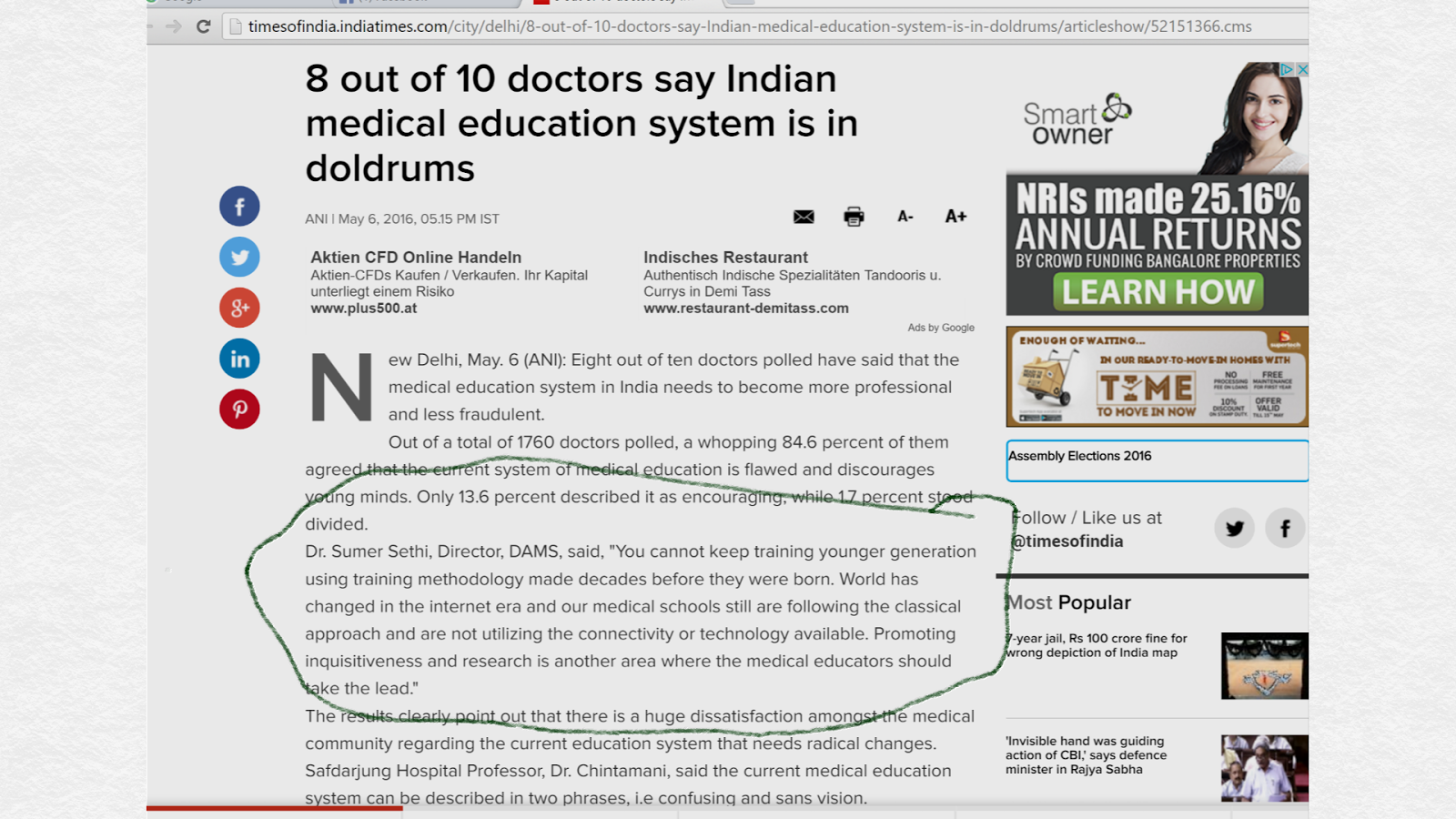 Dr Sumer Sethi On Times Of India Feature On Medical Education
