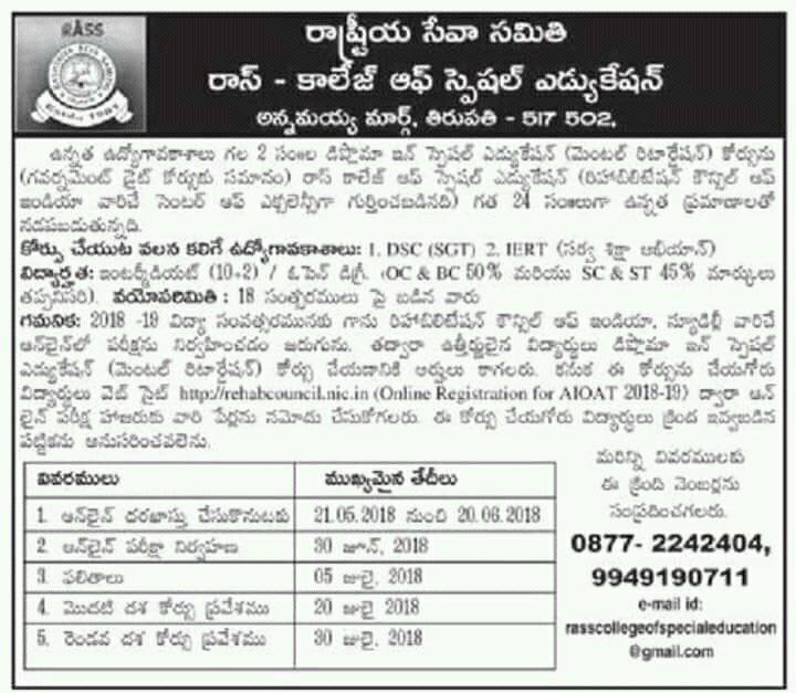 Aioat 2020 Latest News Rci Special Bstc D Ed Registration Form