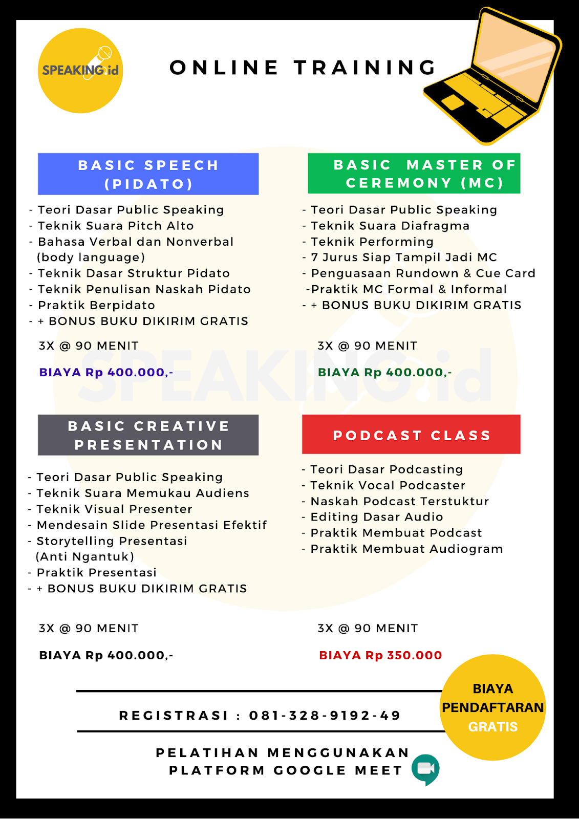 Kursus online gratis menjadi salah satu hal yang diburu untuk mengisi waktu di rumah selama pandemi virus corona. Tidak ada biaya tambahan apapun terkait pencetakan. Anda dapat mengkases informasi dimana pun dan kapan pun dengan mudah. Training online pertama di indonesia.